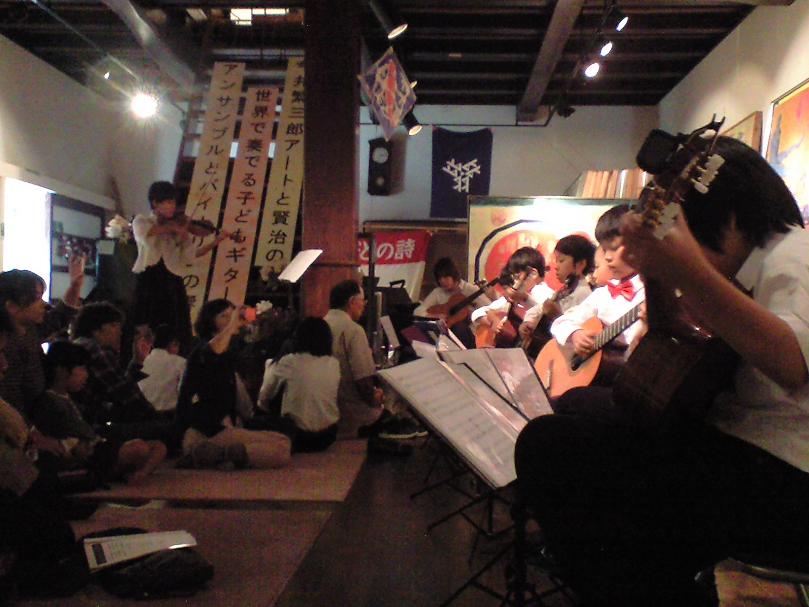 子どもギターアンサンブルとバイオリンの響き
