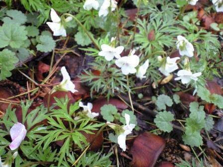 美術館正面に咲きそろったスミレです